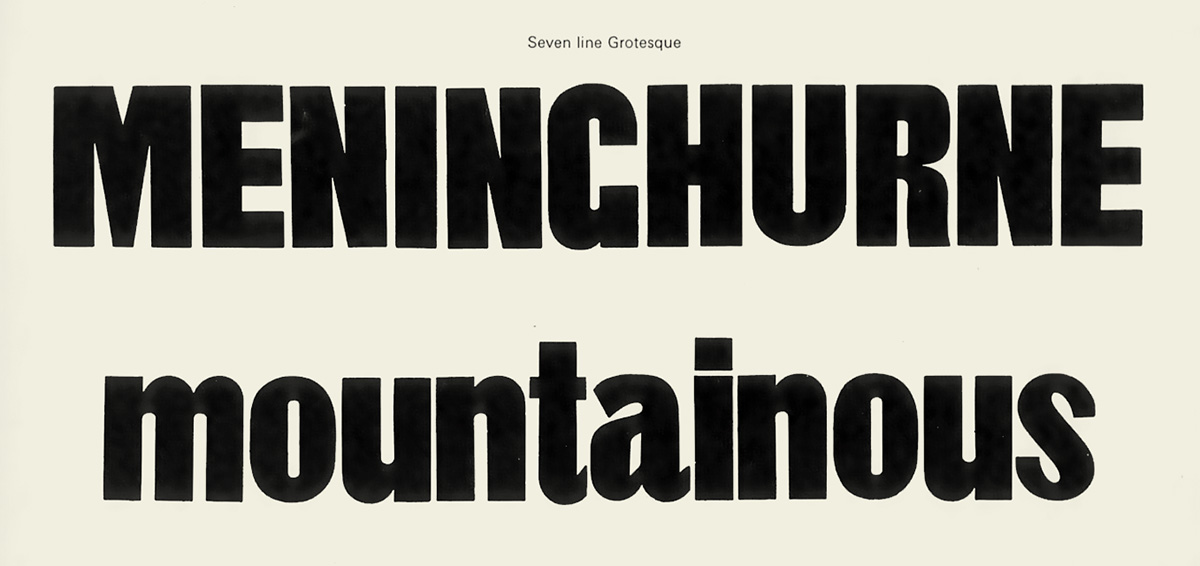 Une des premières lettres bâton imprimée à se voir dotée de minuscules est la Seven Line Grotesque de William Thorogwood vers 1834. Cest aussi la première fois où terme Grotesque est utilisé pour nommer un lettre bâton imprimable – c’est toujours le nom générique des lettres bâton en allemand. Comme quoi, on peut avoir un passé grotesque et un avenir universel et neutre.