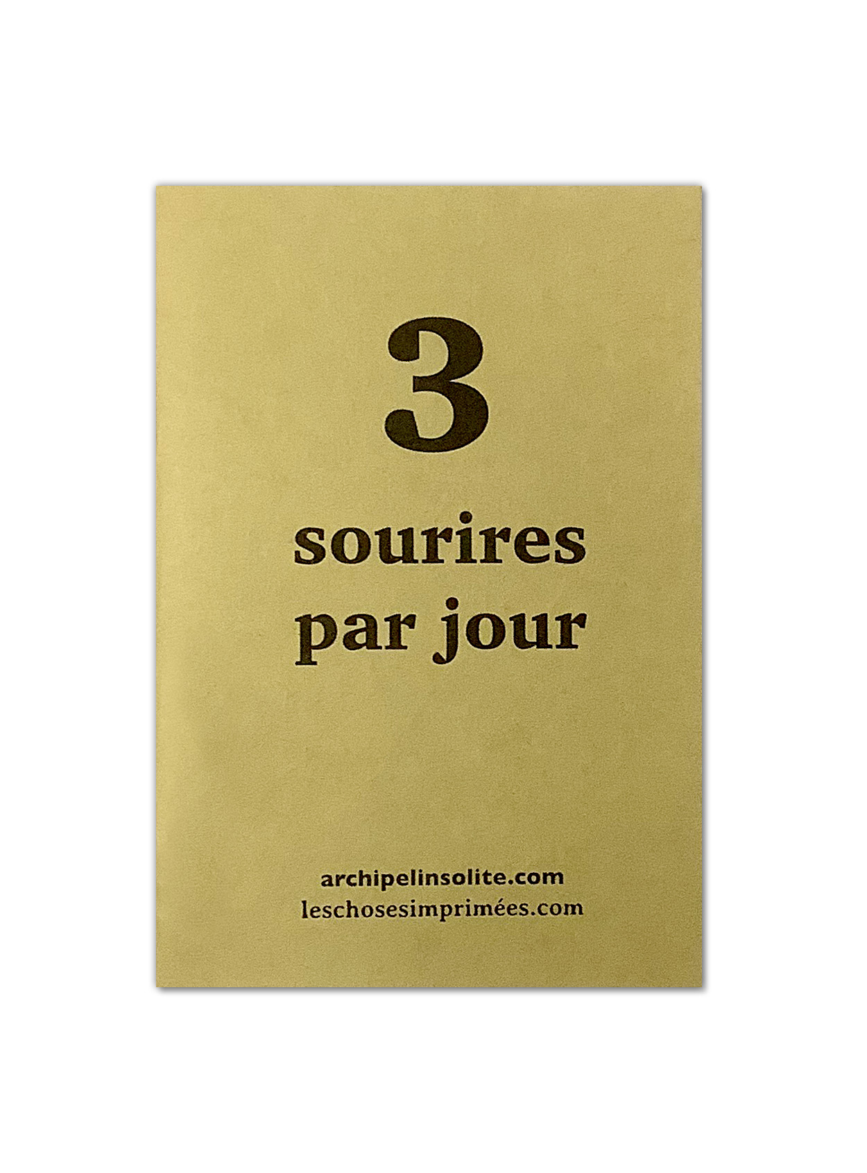 - Le carnet «3 sourires par jour» en coédition avec Archipel Insolite (à utiliser sans modération).