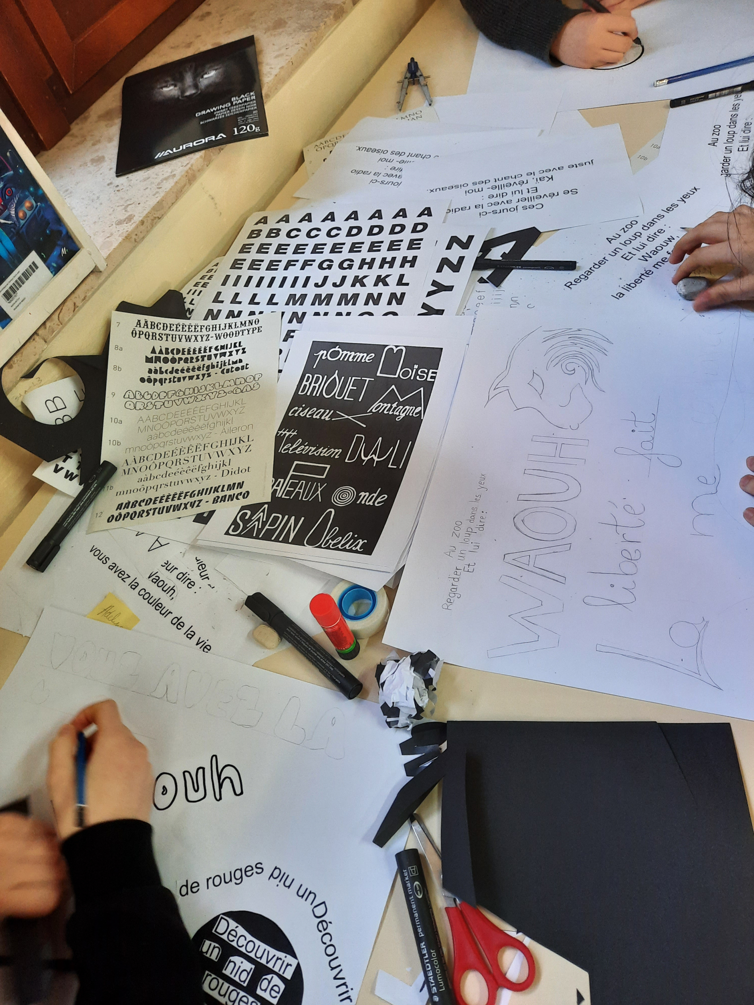 C’est au cours du mois de février que j’ai proposé de revenir, lors de quatre ateliers, sur les lettres «sages» des Stichous pour les rendre un peu plus «folles».