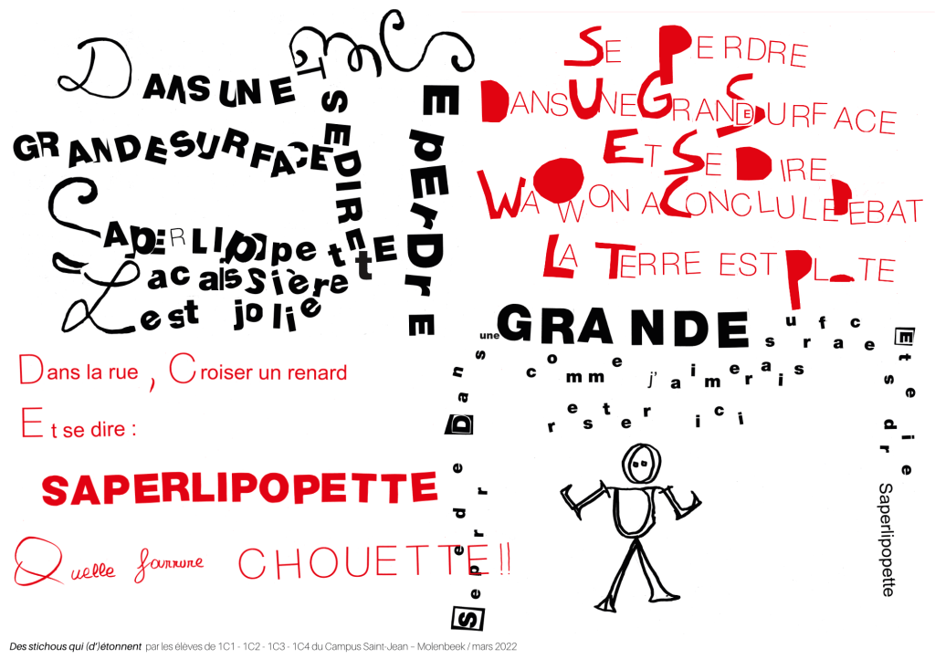 C’est là où j’ai pu intervenir, grâce à la confiance de Virginie D’Hooge, initiatrice et coordinatrice à la Maison de la francité pour l’ensemble du projet « Des Stichous qui détonent ! ».
