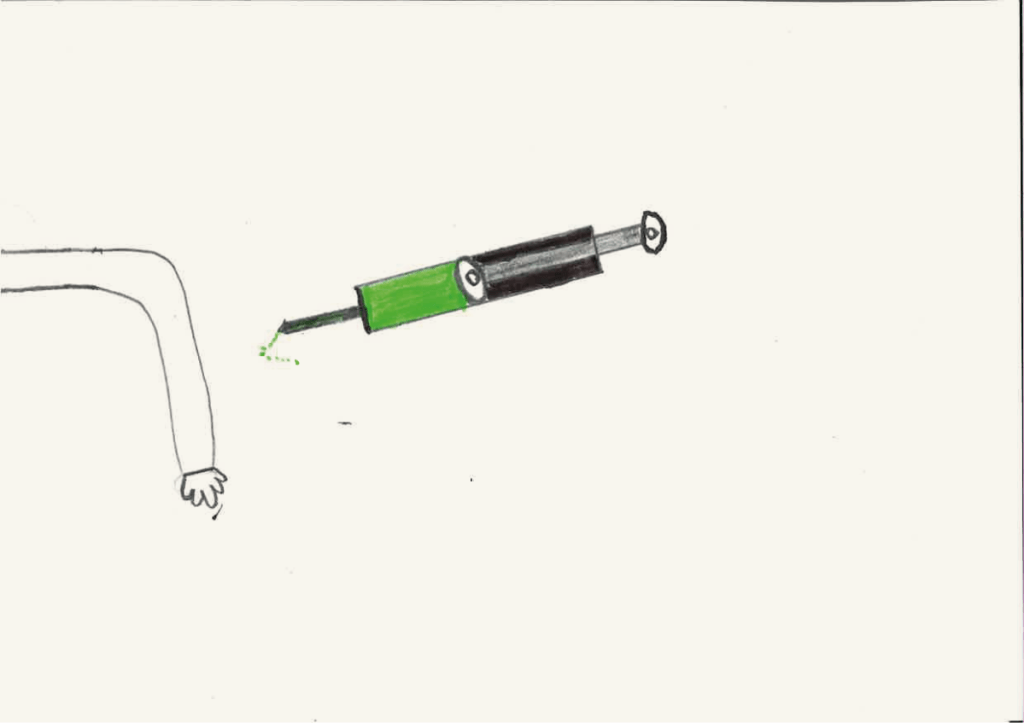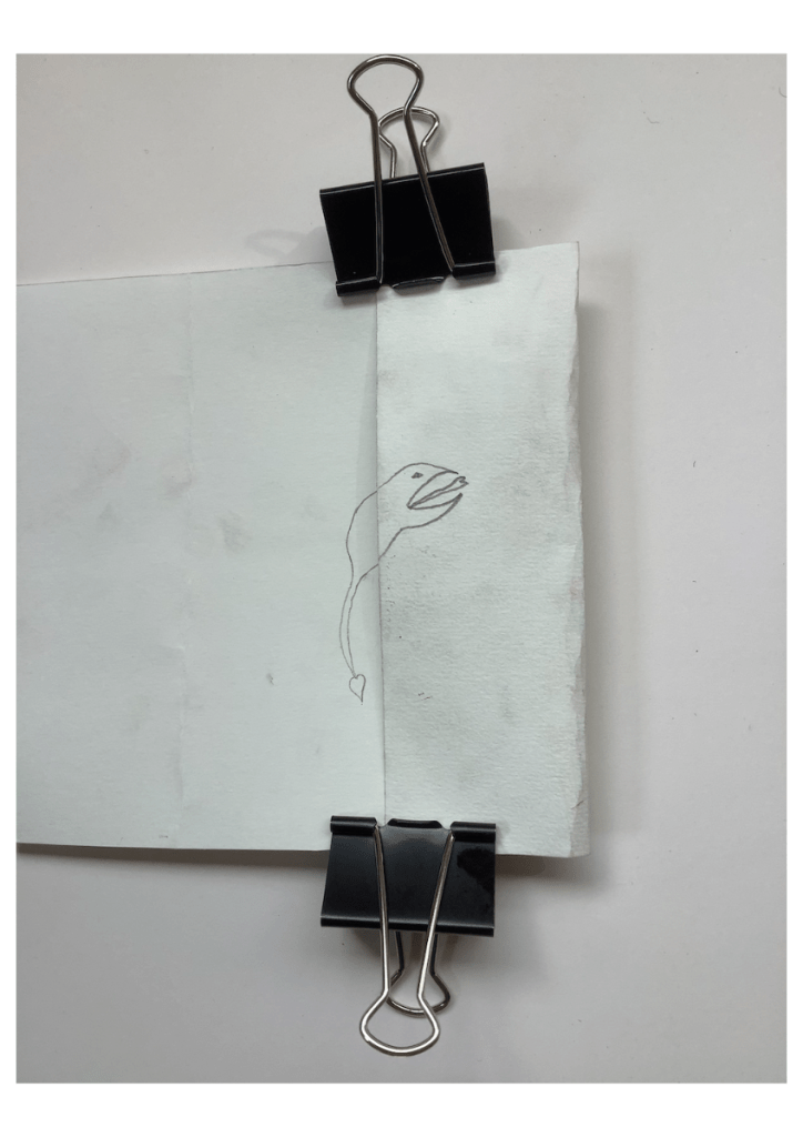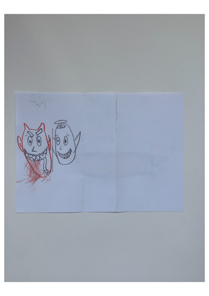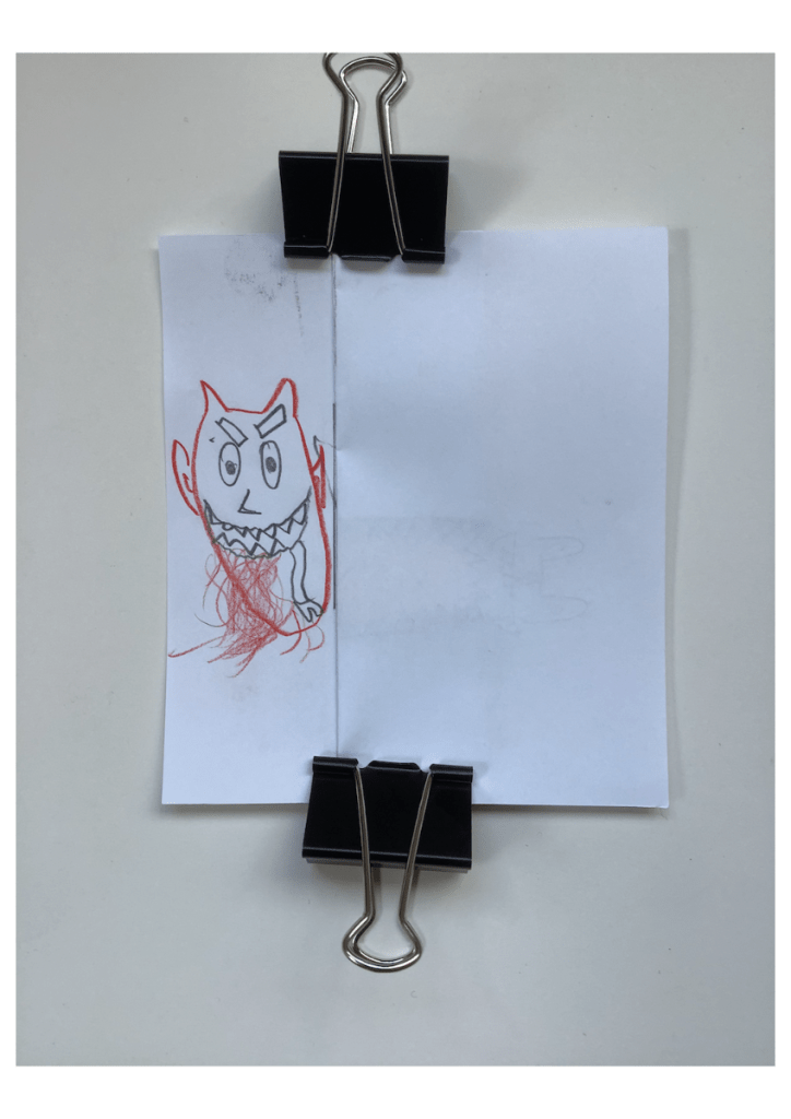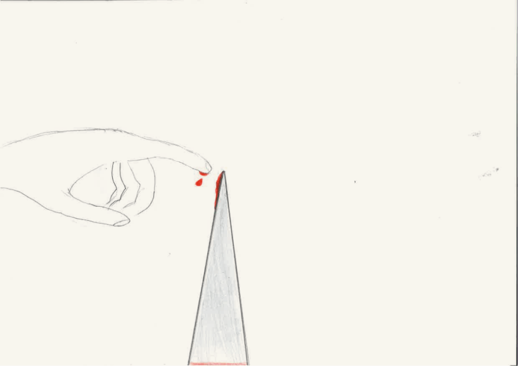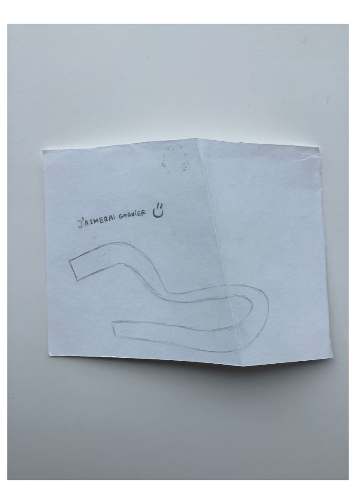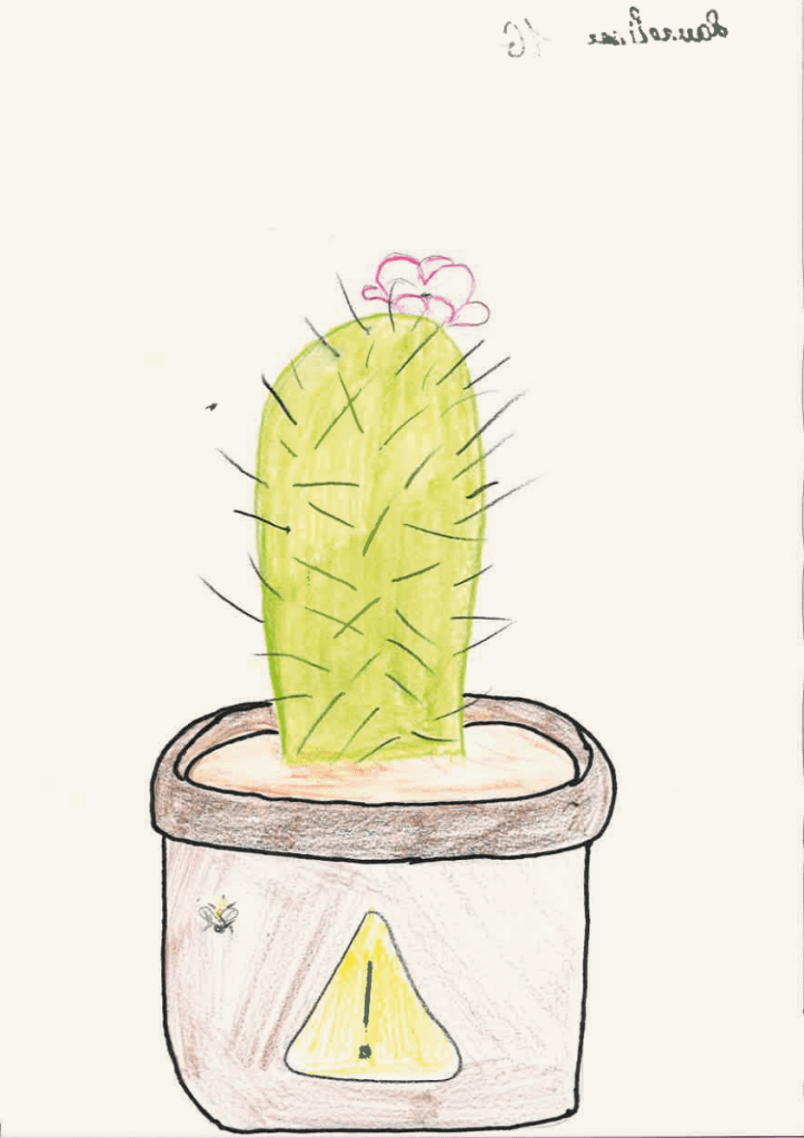 Et si elle ne s’est pas présentée ce jour, vous pouvez toujours leur montrer ce que le gagnant du défi « Un dessin qui pique » avait proposé l’année dernière. À la 14e minute, il a pris une punaise qu’il a fichée dans son A5 et m’a dit: « Voilà, monsieur, un dessin qui pique !»