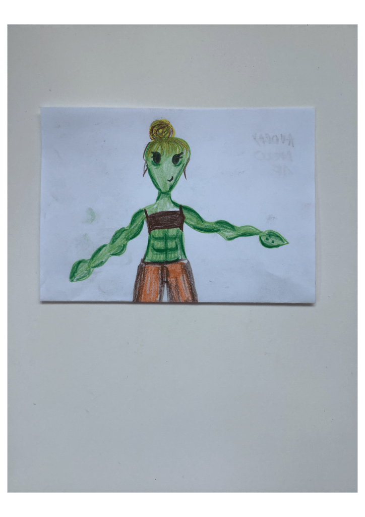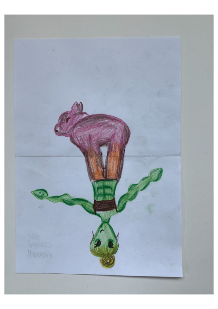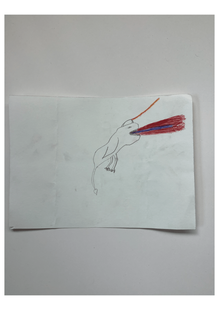 De nombreuses autres occasions s’offrent pour proposer les défis dessins. L’une d’elles, plus individuelle et charmante, se présente de temps en temps en fin de 1re année où un flottement dans les derniers cours peut se faire sentir: certaines et certains ont terminés leur dernier exercice évalué… que faire? C’est l’occasion de proposer des exercices facultatifs divers et variés: par exemple le « défi histoire » (sur lequel je reviendrai lors du prochain article) ou le « défi dessin à la demande ». Et là se produisent parfois de petites performances bien sympathiques. Une ou un élève se met à « manger goulument » du défi dessin. Je leur confie la pile de fiches de défis sans sélection préalable et ils choisissent. Et je me retrouve avec un festival de 4,5,6… réponses à des défis toutes aussi intéressantes et créatives que rapidement exécutées. Le plus souvent, ces marathonien·en·s sont des élèves plutôt discrets, pas forcément les plus fervents dessinateurs de l’année… Quel plaisir de les découvrir.