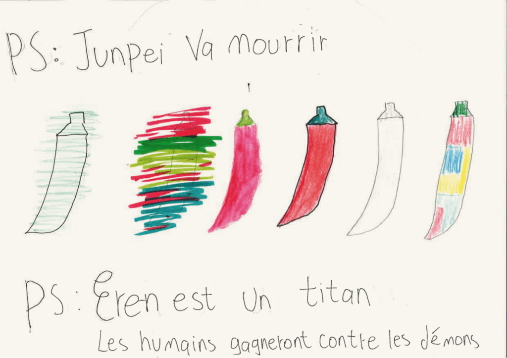 Un tout grand merci aux élèves de 1re année et de 2e année AC art et IJ 2020-2021 et 2021-2022 sans qui cet article n’aurait pas pu voir le jour.