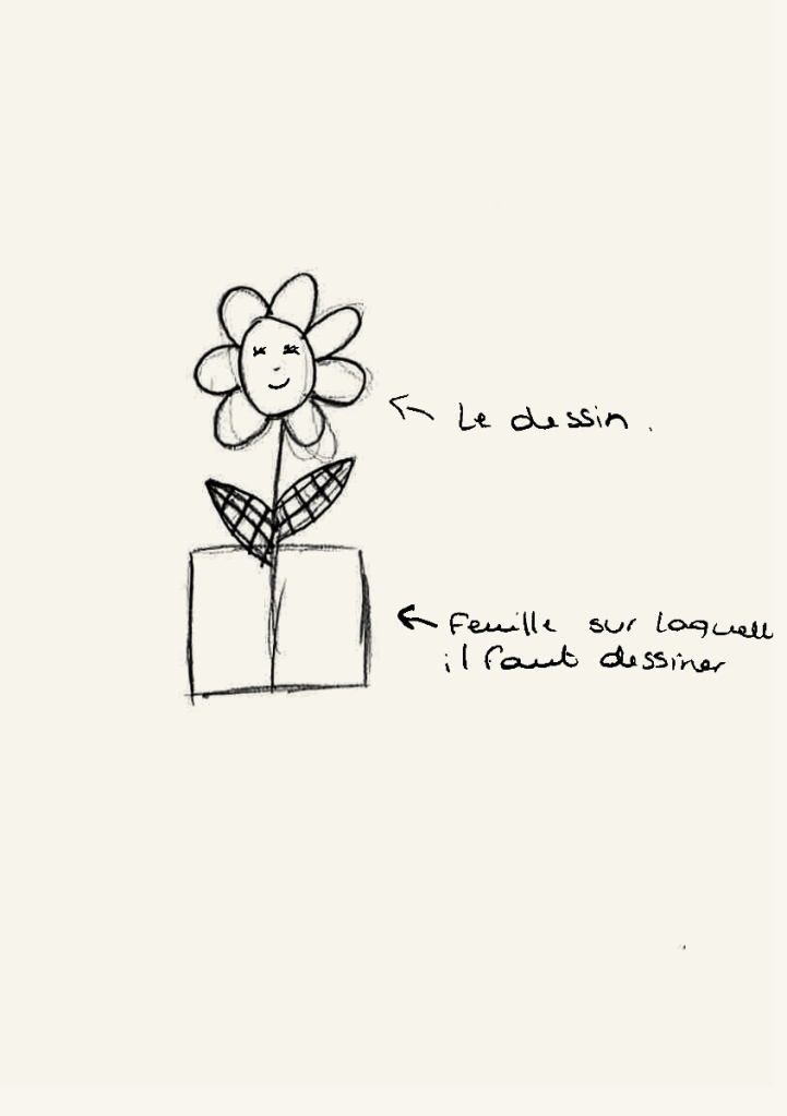 - Tout le monde travaille sur un format A5 (ou une demi-feuille de classeur) avec les outils que vous avez à disposition.