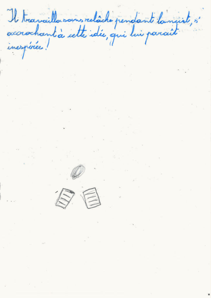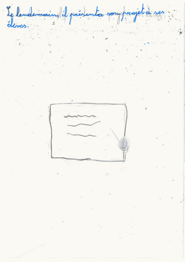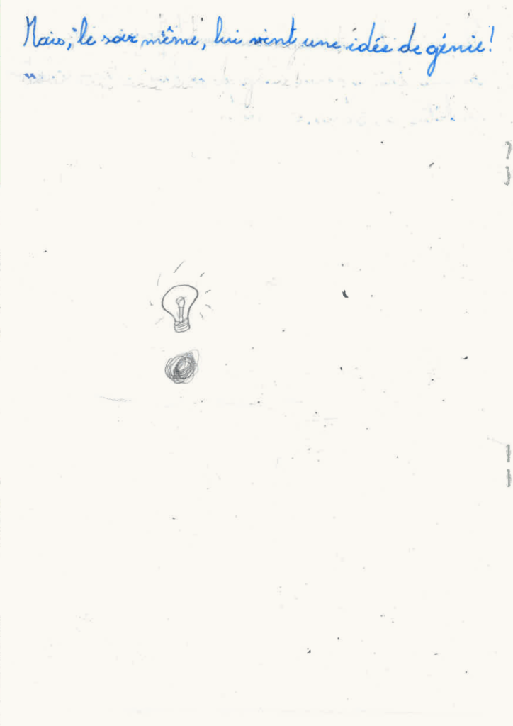 Il m’a donc fallu surétayer (faire par moi-même), si ce n’est l’écriture de l’histoire même, mais celle de sa fin (par la proposition d’un choix multiple) et celle du découpage. Cela prenait trop de temps, la fin de l’année scolaire approchait… et ils voulaient « dessiner ».