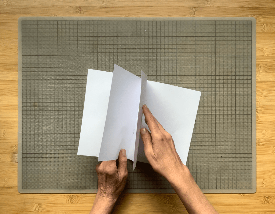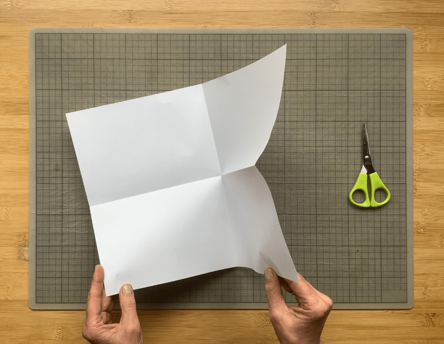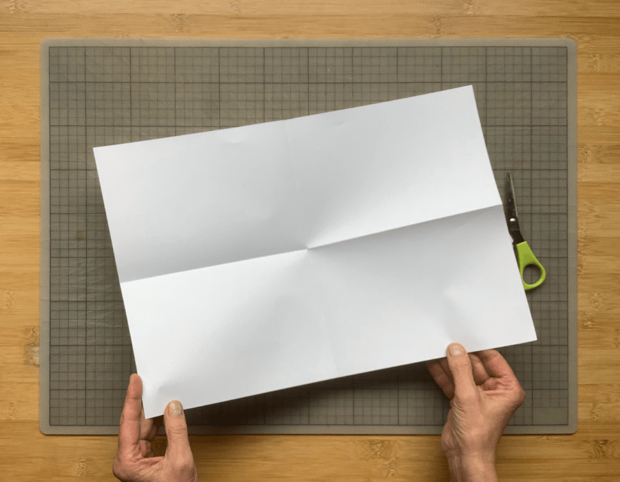Pour cela, il suffit d’une feuille A3, d’une paire de ciseaux et d’un accessoire un peu plus spécifique, mais tout aussi abordable : une agrafeuse à long bras.