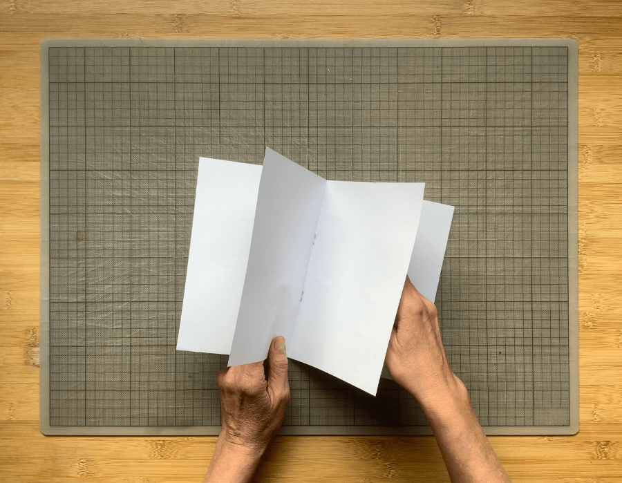 L’accroche de l’exercice est formelle. Je montre comment et à quel point il est facile de fabriquer un objet livre.