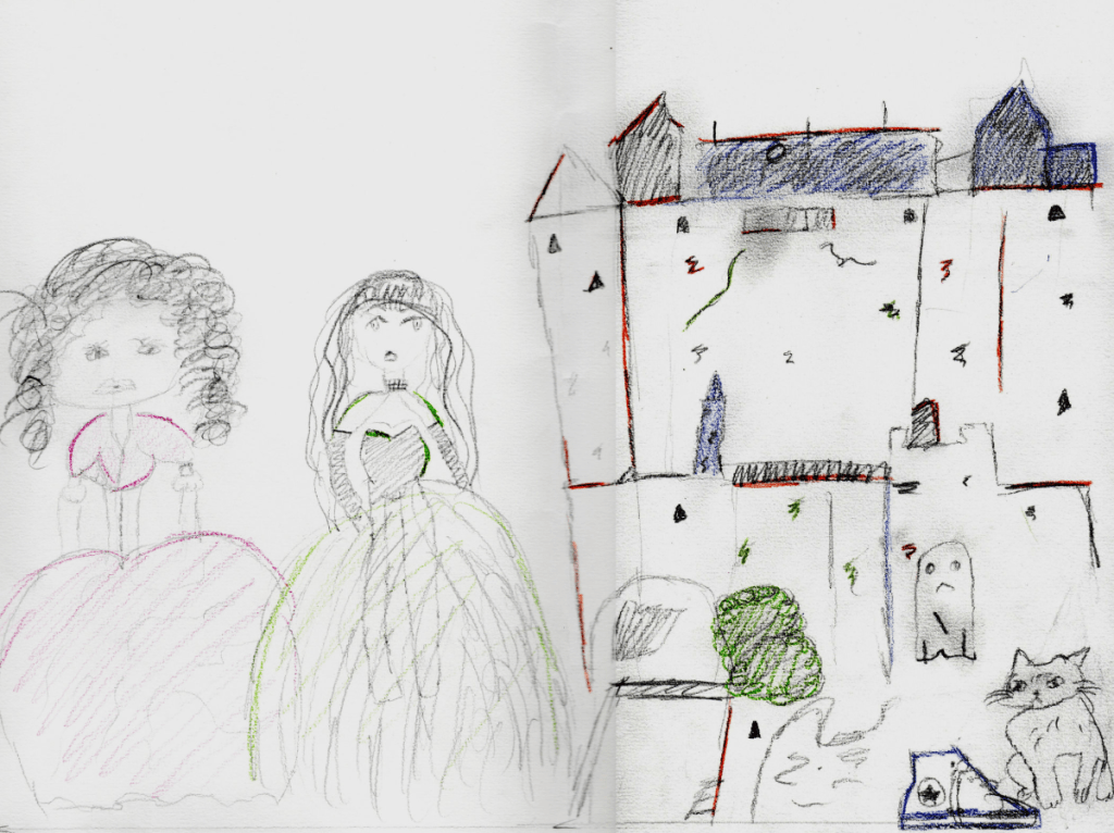 14 élèves. Lors de la création de l’histoire, j’ai proposé à chacun des élèves de choisir un personnage. Au fur et à mesure de l’écriture, sur les 13 personnages choisis (une élève était absente le jour du choix), trois sont devenus des personnages principaux. Pour préparer la réalisation imagée, chacun devait réaliser plusieurs images de référence de son personnage, susceptibles d’être reproduites/interprétées par un autre élève. L’élève absente a choisi de prendre en charge le décor principal : le château.