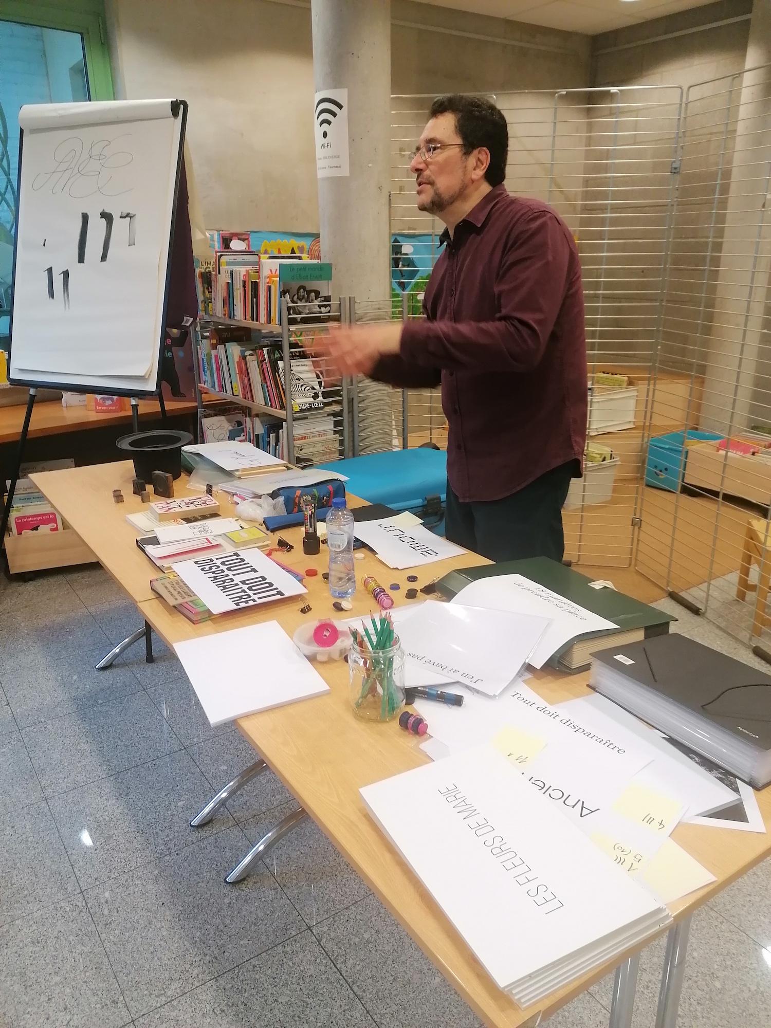 C’est dans le cadre des thématiques trimestrielles de cette belle et dynamique bibliothèque que j’aurai le plaisir de présenter une série de conférences/causeries/ateliers/promenades/jeux centré·e·s sur la matérialité de l’écriture: sa «part visuelle».
