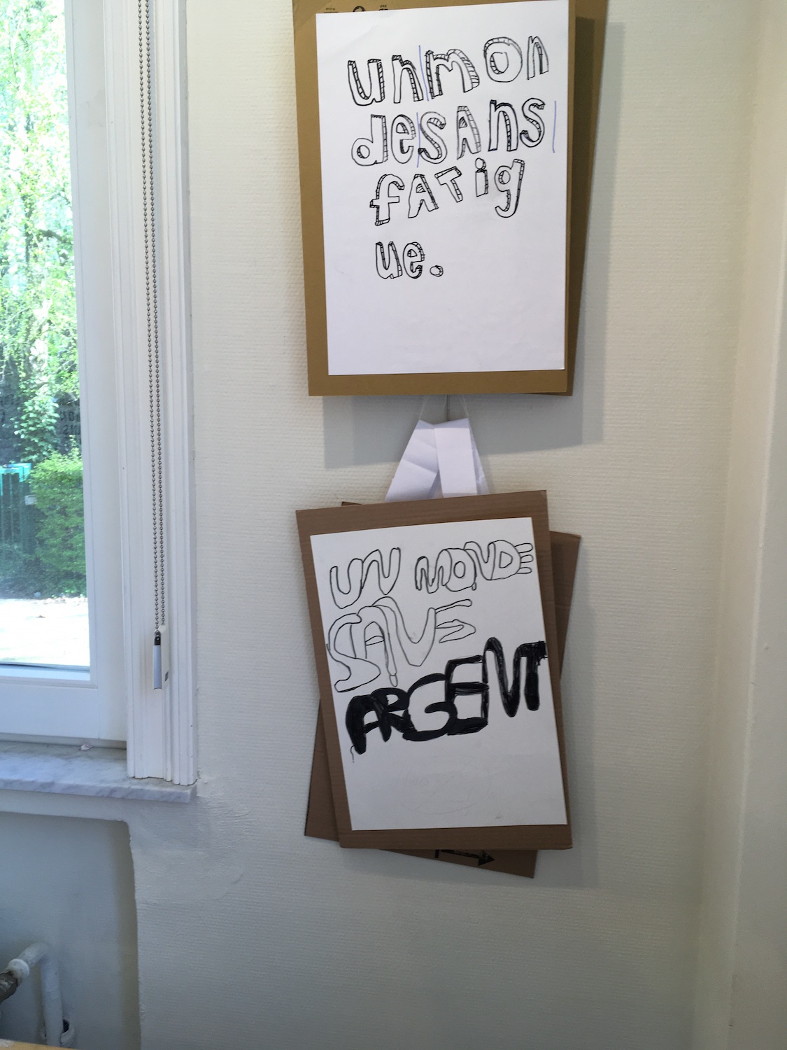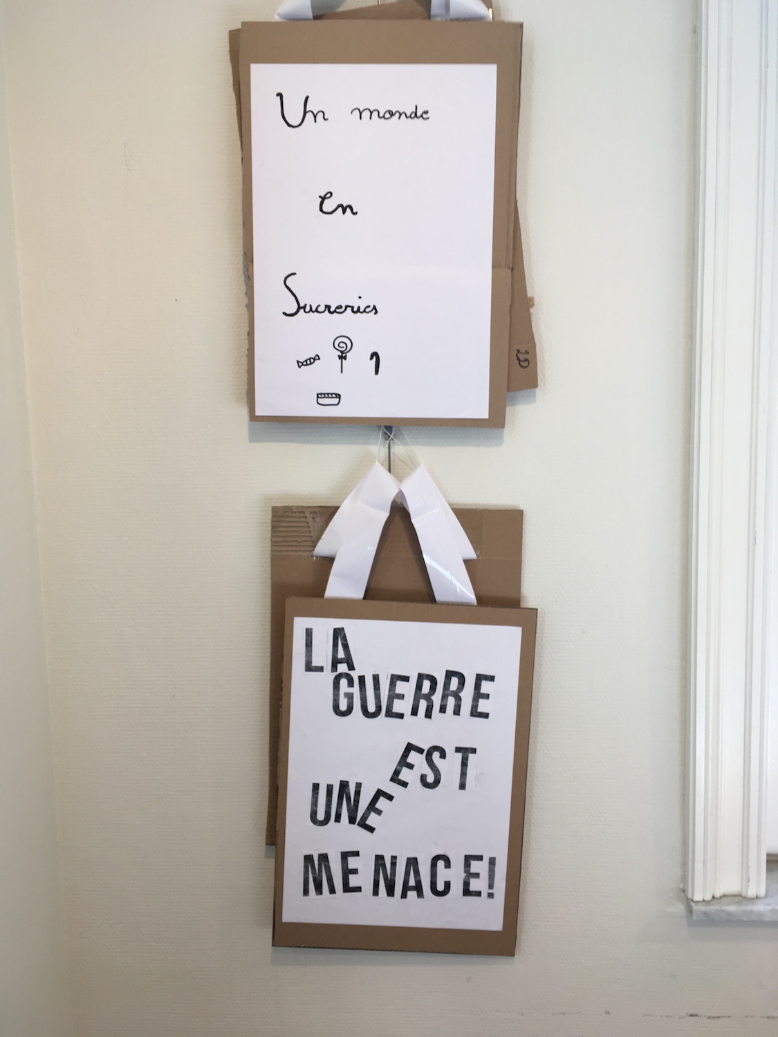 Résultats des courses, une cinquantaine de slogans sur costumes d’«homme/femme sandwich» et des mots/images qui n’auraient pas déplu à Nougé et Magritte.