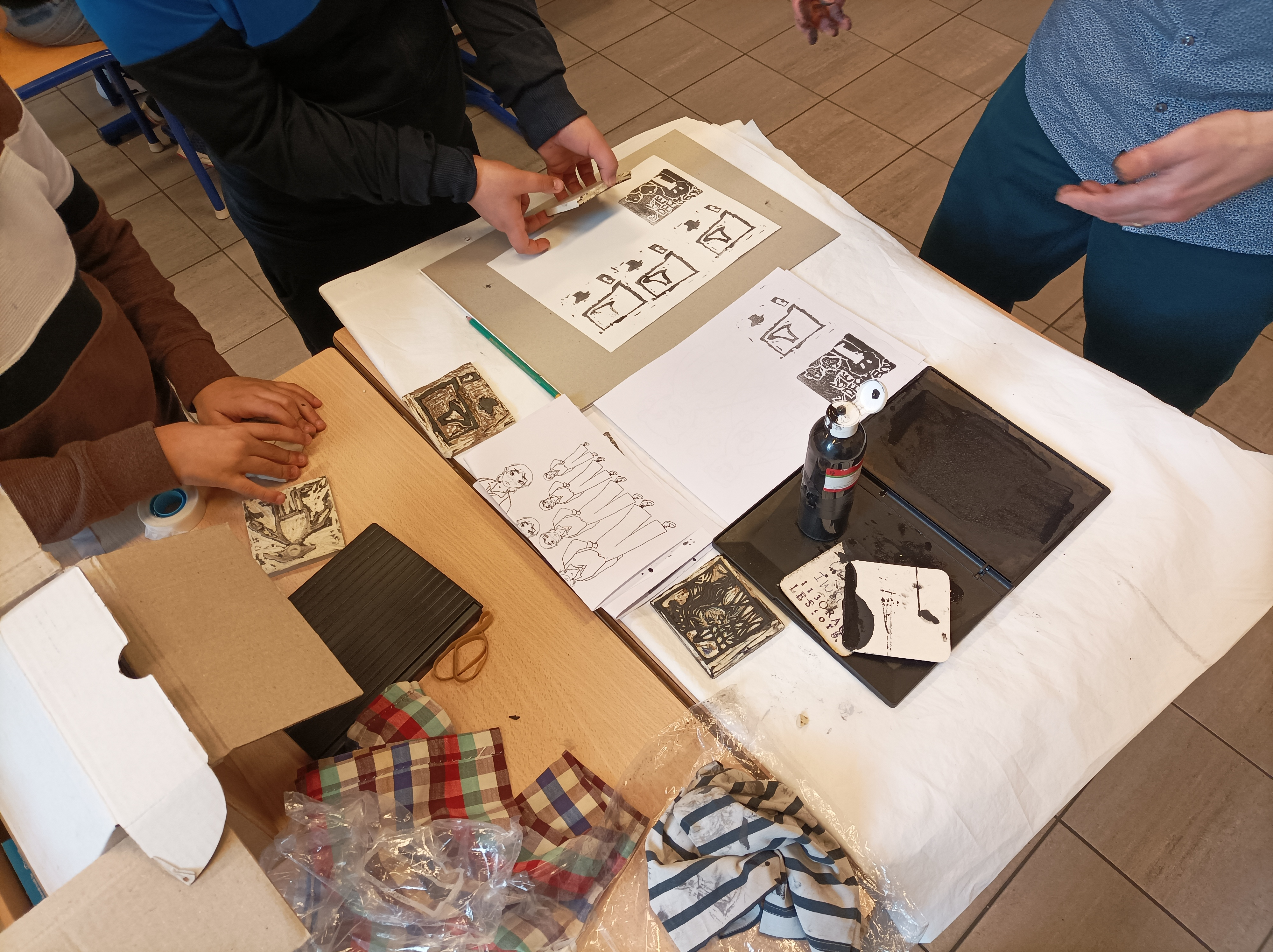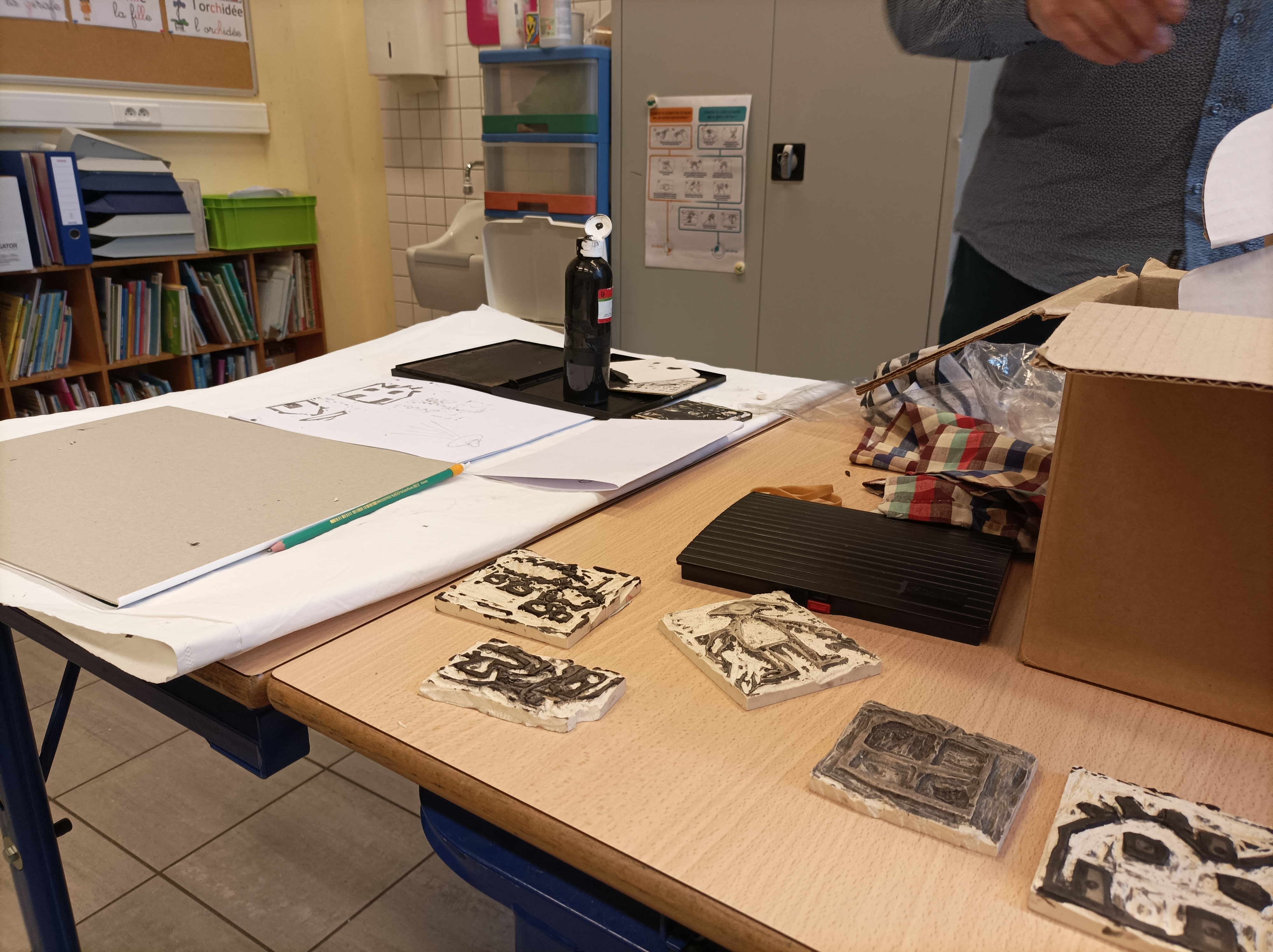 Création de narrations collectives en texte et en image, s’articulant autour de la fabrication/impression de l’objet qui la contiendra: livre ou Kamishibaï: